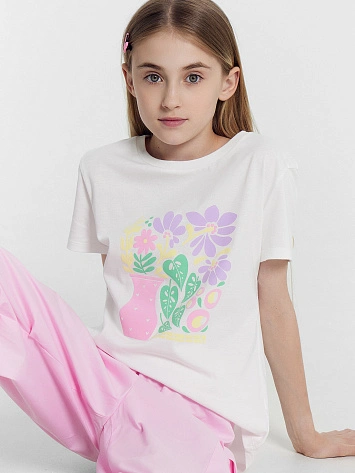 Футболка для девочек белая с печатью