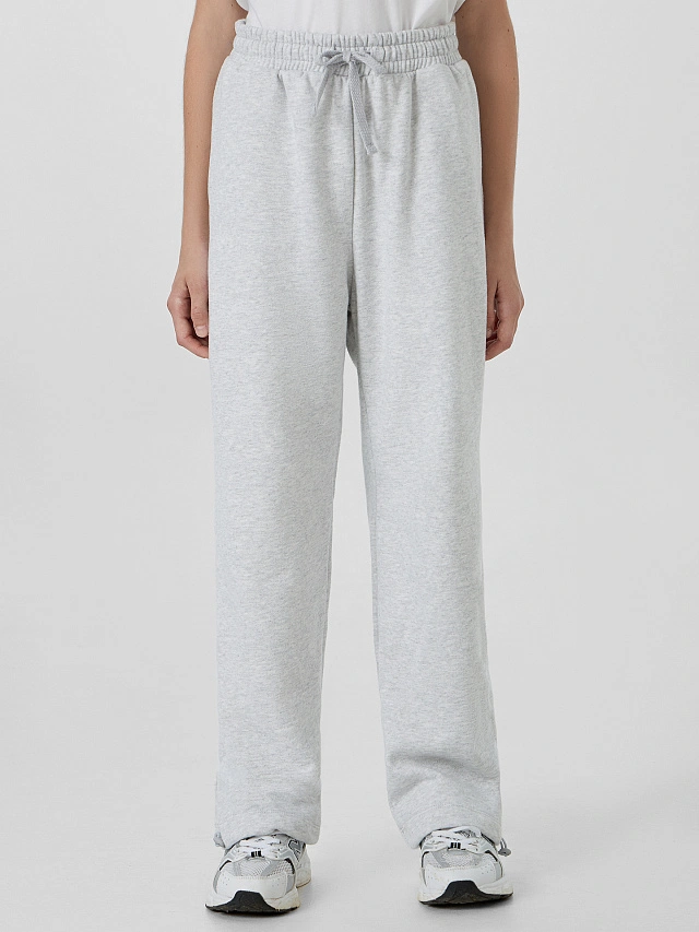 Брюки для девочки прямого кроя с высокой посадкой созданы для повседневного комфорта. Удобный эластичный пояс из рибаны обеспечивает идеальную посадку по фигуре. Модель выполнена из футера без подчеса, отличающегося мягкостью и отличной воздухопроницаемостью. Качественная обработка нижних срезов швом вподгибку гарантирует аккуратный внешний вид после множества стирок.