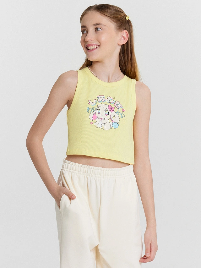 Топ для девочек желтый с принтом