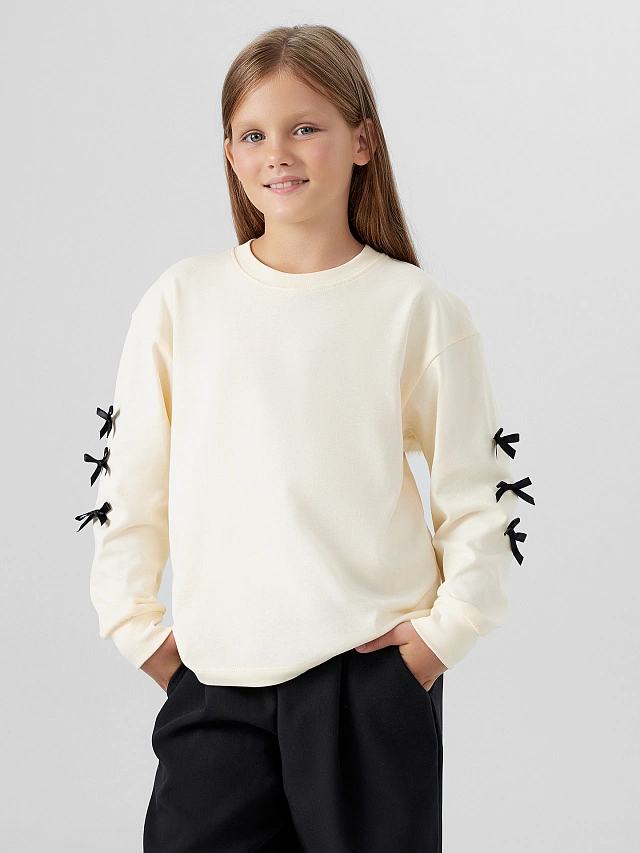 Лонгслив для девочек молочный с бантиками