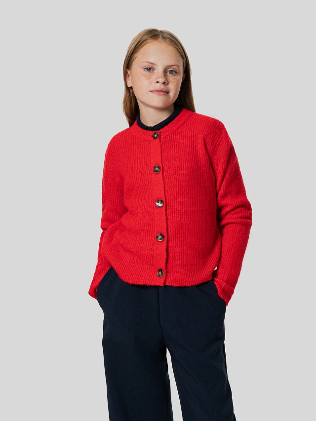 Кардиган для девочек — это уютная и стильная вещь, которая легко впишется в повседневный гардероб. Прямой крой на пуговицах делает модель универсальной: ее удобно надевать и сочетать с другими элементами одежды. Длинные рукава обеспечивают комфорт в прохладную погоду, а смесовая пряжа — удачное сочетание натуральных и синтетических волокон — отвечает за мягкость, тепло и устойчивость к износу. Такой кардиган подойдет как для школы, так и для прогулок, создавая образ, где тепло и стиль идут рука об руку.