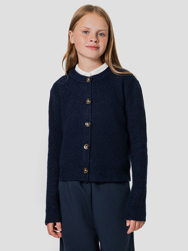 Кардиган для девочек — это уютная и стильная вещь, которая легко впишется в повседневный гардероб. Прямой крой на пуговицах делает модель универсальной: ее удобно надевать и сочетать с другими элементами одежды. Длинные рукава обеспечивают комфорт в прохладную погоду, а смесовая пряжа — удачное сочетание натуральных и синтетических волокон — отвечает за мягкость, тепло и устойчивость к износу. Такой кардиган подойдет как для школы, так и для прогулок, создавая образ, где тепло и стиль идут рука об руку.
