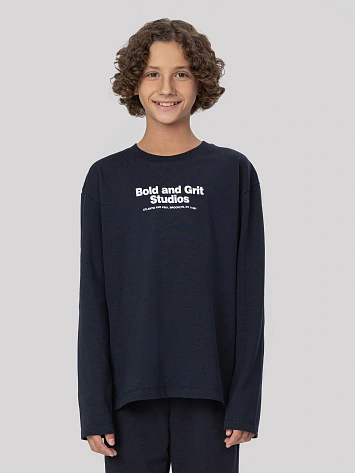 Лонгслив для мальчиков синий с надписью "bold and grit studios"