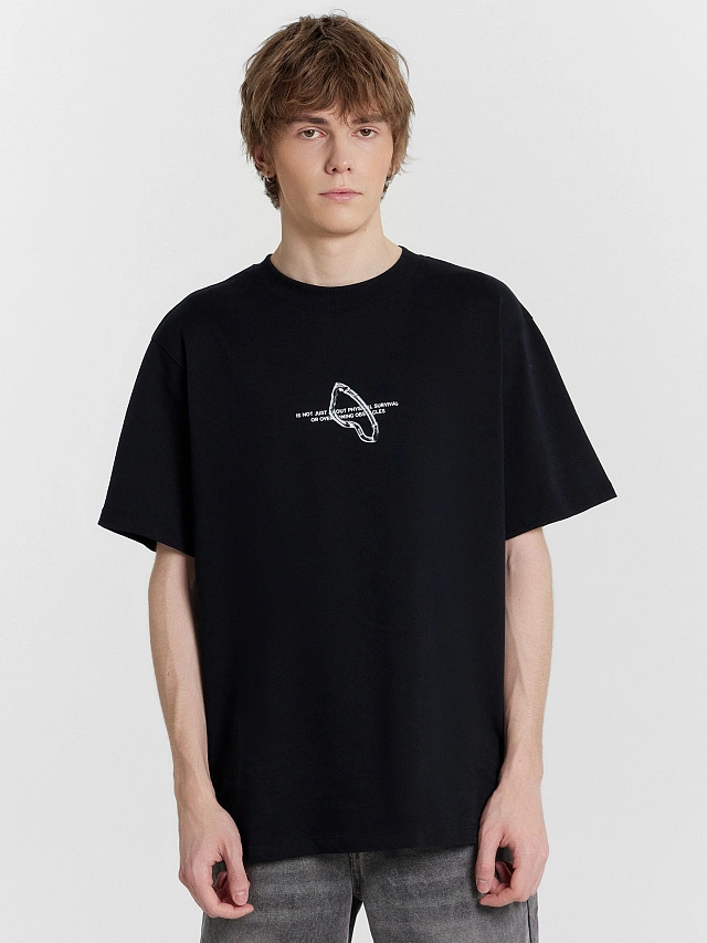 Обычная черная футболка оверсайз, качество ткани хорошее