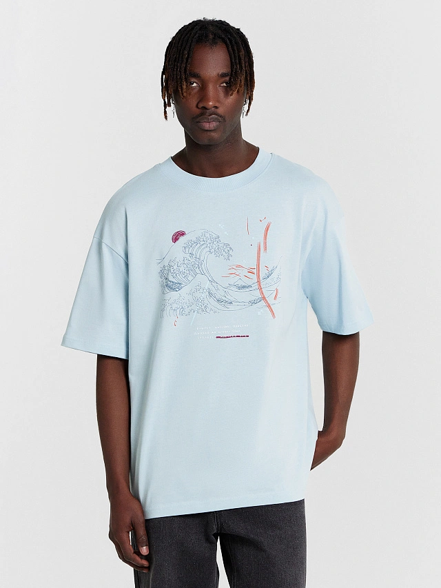 Футболка мужская голубая с принтом