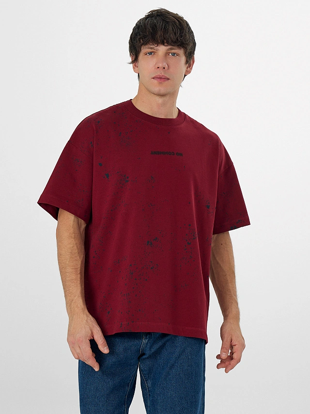 Насыщенный бордовый цвет с графичным эффектом брызг и лаконичная надпись придают модели современный, слегка ироничный характер. Футболка легко сочетается с джинсами, чиносами, шортами или спортивными брюками, делая её универсальным выбором для прогулок, встреч с друзьями или неформальных выходов.