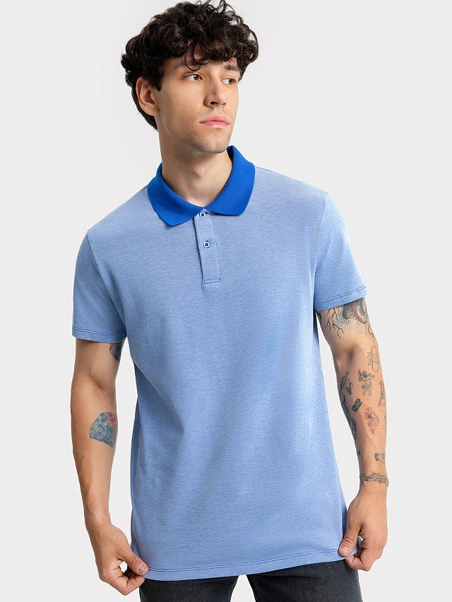 Джемпер-поло светло-голубого оттенка с синим воротником для мужчин