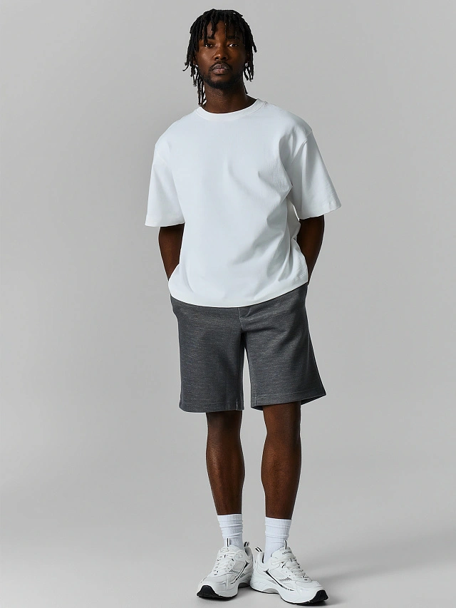 Серый цвет — универсальная база, которая легко сочетается с футболками, поло, рубашками и любой обувью. Вариант для повседневной носки в тёплое время года.
