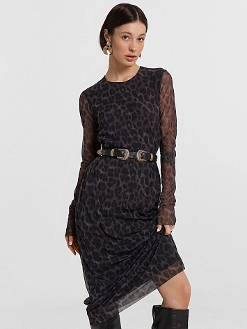 Платье женское серое с леопардовым принтом
