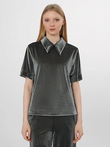 Поло велюровое женское зеленое