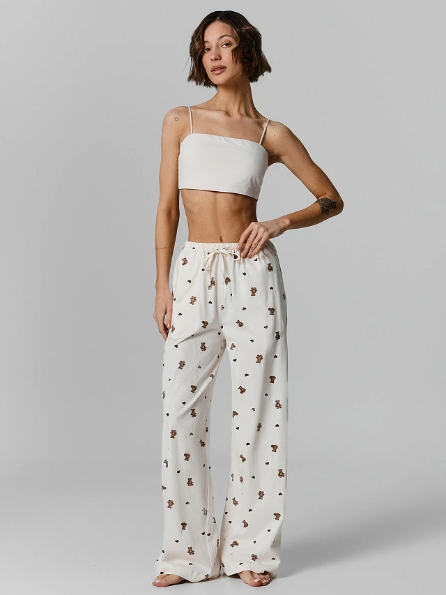 Брюки домашние женские кремовые с мишками