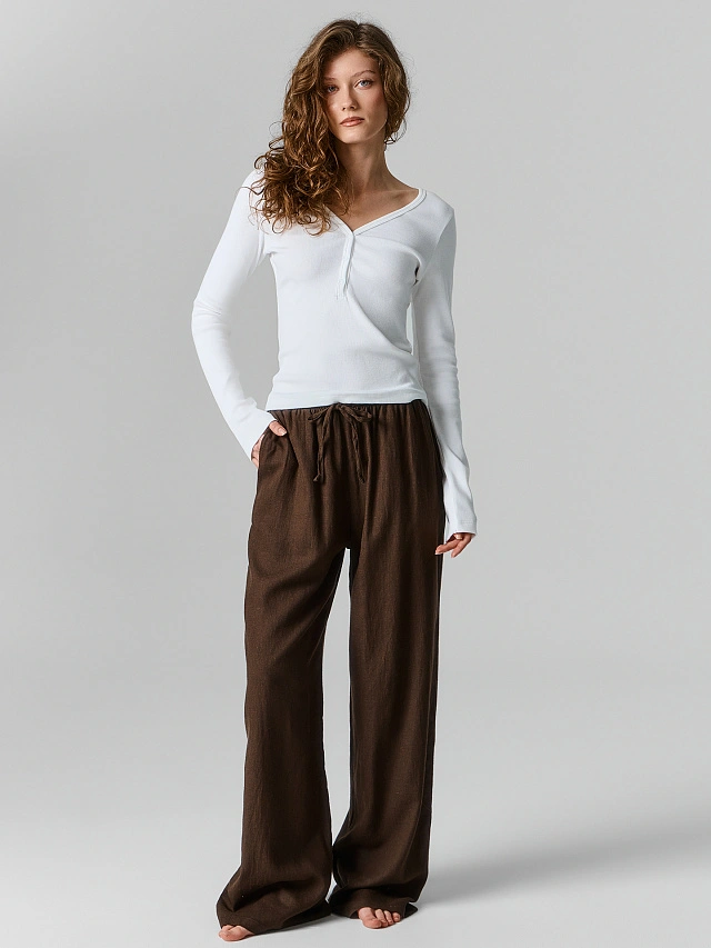 Новинка из коллекции "Premium Linen" — стильные брюки женские домашние из нежной вискозы и премиального льна. Материал мягкий и комфортный в носке. Идеальны для носки в жаркое время года. Модель с посадкой на талии, свободного силуэта. Пояс с эластичной резинкой внутри. На передних деталях выполнены карманы "хулиганы". Широкий фасон обеспечивает свободу движений. Дополнить можно стильным топом или свободным жакетом в тон из льняной коллекции для женщин. Брюки представлены в нескольких цветах. Рекомендуем для уютных домашних образов!