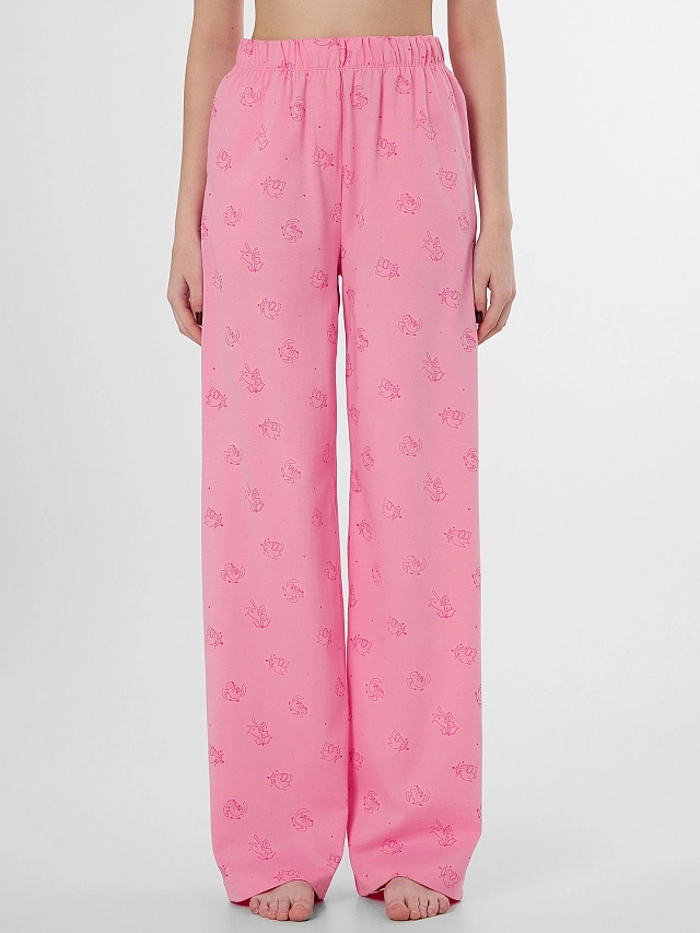 Брюки домашние женские розовые с принтом котиков-купидонов