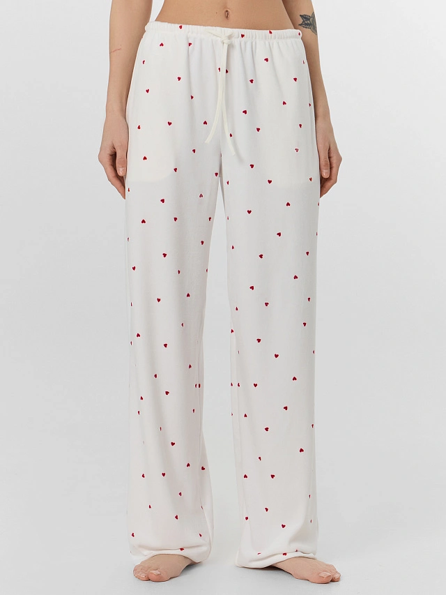 Брюки женские домашние велюровые с сердечками