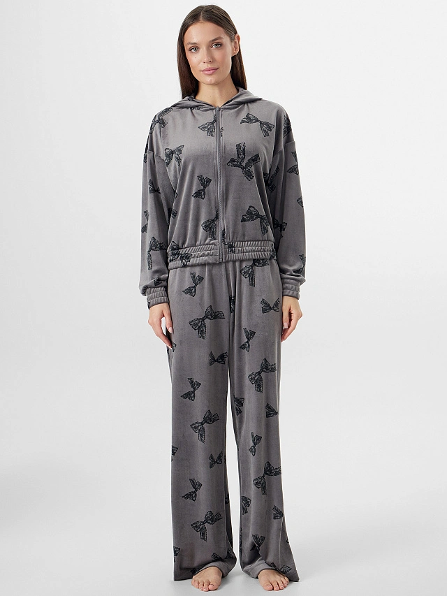 Мягкий велюровый комплект для дома создан для тех, кто ценит уют и комфорт. В набор входит толстовка с капюшоном и свободные брюки — идеальный дуэт для расслабленного отдыха. Толстовка без плечевых швов мягко облегает фигуру, не стесняя движений, а просторная горловина и широкие проймы рукавов дарят ощущение невесомости. Уютный двойной капюшон создает ощущение защищенности и комфорта, будто вы в своем личном уголке спокойствия. Эластичные манжеты на рукавах и по низу толстовки мягко фиксируют край, сохраняя тепло.