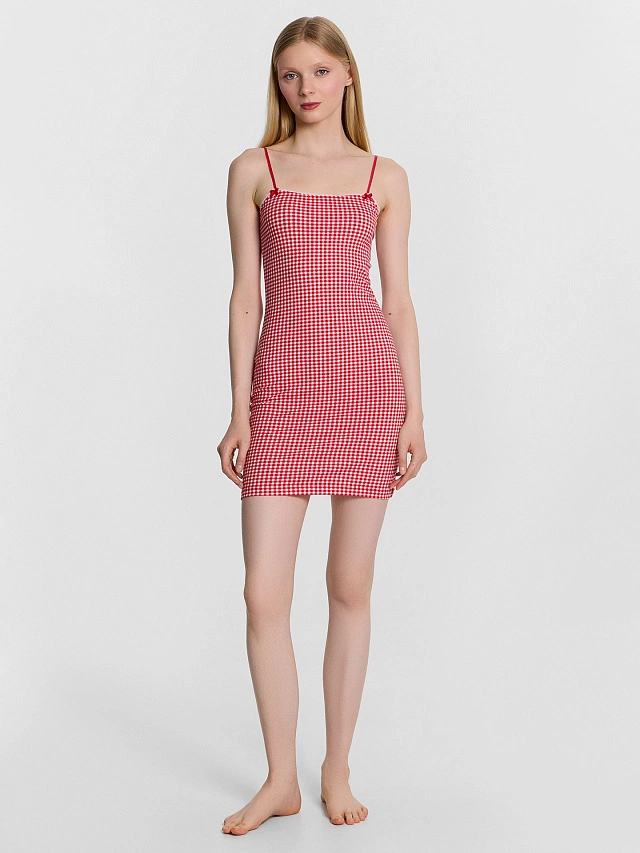 Эта женская ночная сорочка — элегантное и комфортное решение для сна. Прилегающий силуэт мягко подчеркивает фигуру, создавая женственный и изящный образ. Мини-длина придает изделию легкость, а верхний край обработан мягкой тесьмой, обеспечивающей комфортное прилегание. Тонкие бретели-спагетти создают утонченный и легкий акцент, добавляя воздушность модели. Низ изделия аккуратно обработан швом в подгибку, что делает сорочку не только красивой, но и долговечной. Изготовленная из хлопковой кулирки, она дарит ощущение мягкости и естественной воздухопроницаемости, позволяя коже дышать и обеспечивая комфортный отдых. Прекрасный выбор для тех, кто ценит сочетание простоты, удобства и элегантности в домашнем гардеробе. Отлично подходит для уютных вечеров и спокойного сна!