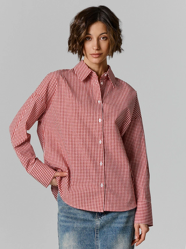 Женская рубашка с классическим клетчатым узором — вещь, которая не теряет актуальности. Прямой силуэт и рубашечный воротник создают сдержанный, аккуратный образ, который одинаково хорошо смотрится с джинсами, брюками, а также поверх топа или футболки. Такую рубашку можно носить навыпуск, заправлять или использовать как второй слой — она легко подстраивается под нужный стиль.