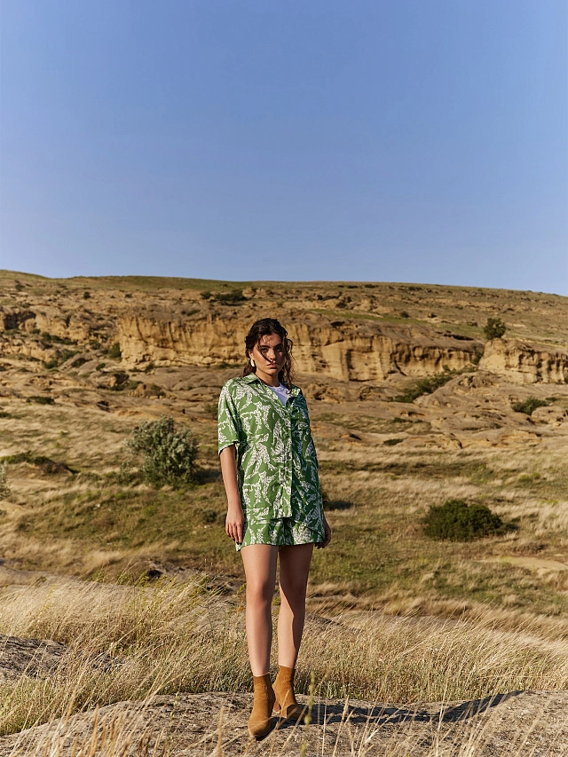 Рубашка женская зеленая с принтом
