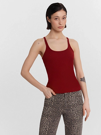 Топ женский бордовый в рубчик