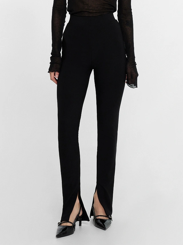 Брюки женские клеш с разрезами черные