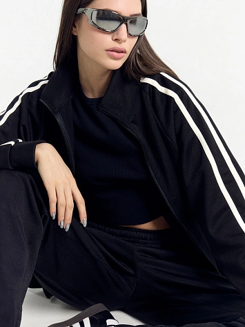 Толстовка женская черная со светло-молочными лампасами