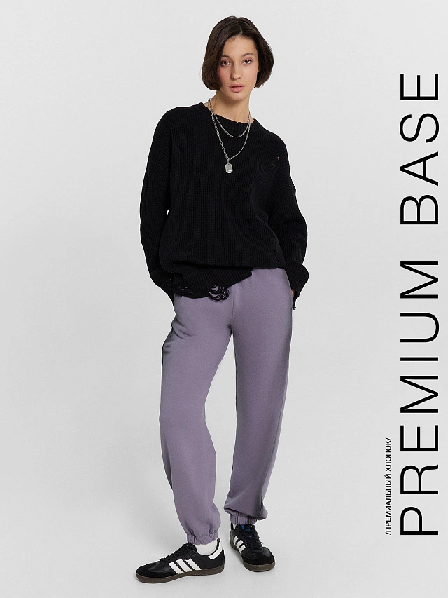 Женские брюки-джоггеры из коллекции Premium Base из футера станут незаменимым элементом вашего повседневного гардероба. Модель оснащена эластичным поясом и боковыми карманами, что обеспечивает максимальный комфорт и функциональность. Изделие выполнено из футера без подчеса — материала, который сочетает в себе мягкость, дышащие свойства и прочность. Он отлично сохраняет форму и не вызывает раздражения кожи, что делает эти брюки идеальными для активного образа жизни. Такие джоггеры подойдут как для занятий спортом, так и для повседневного ношения, добавляя нотку стиля и удобства в ваш образ.