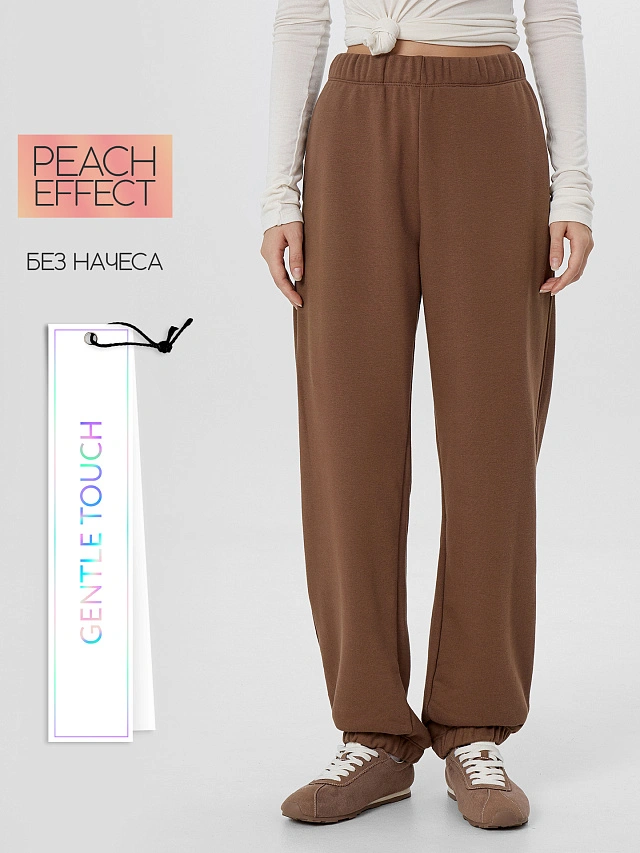 Особое внимание заслуживают просторные боковые карманы с подкладкой из нежного трикотажа – практичная деталь для повседневной носки. Низ брюк оформлен эластичной окантовкой, которая сохраняет форму и добавляет комфорта при движении.
