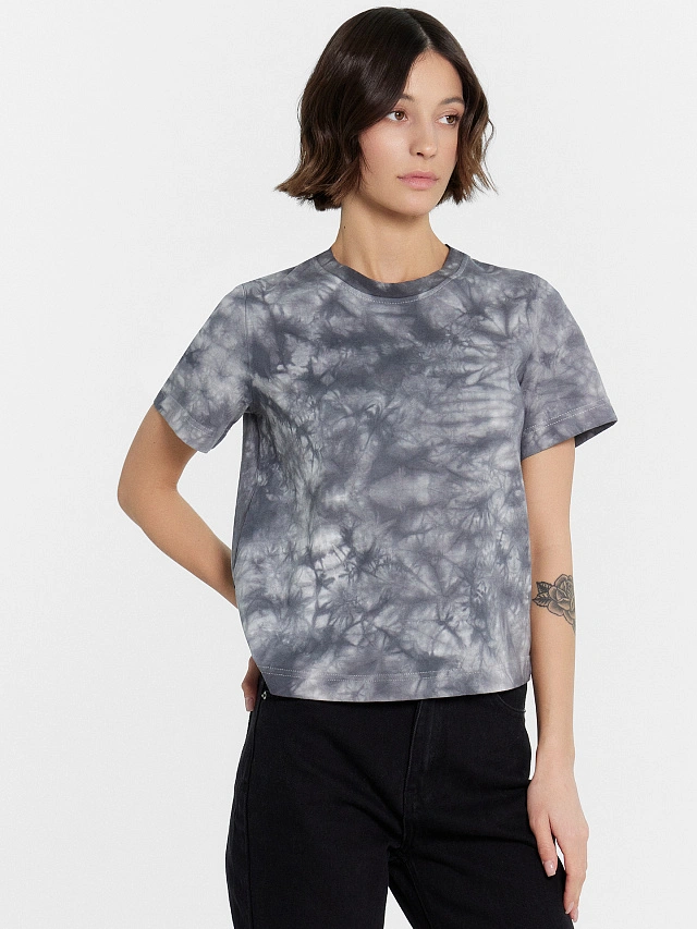 Футболка женская серая с принтом в технике фаст-дай