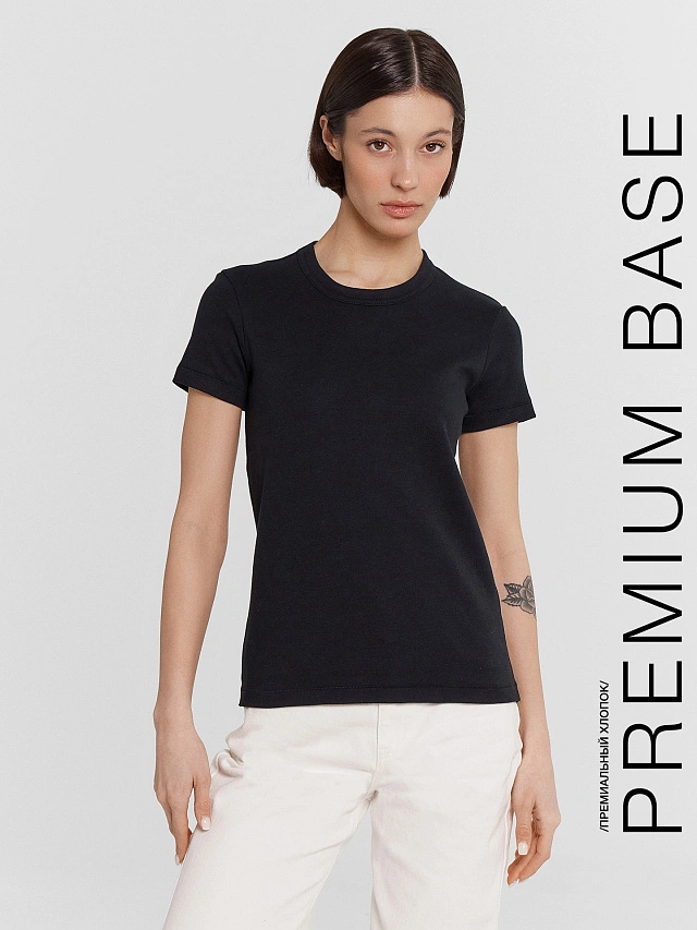 Базовая женская футболка из коллекции Premium Base — универсальный элемент гардероба, который идеально сочетает стиль, комфорт и качество. Модель прямого силуэта с короткими рукавами и круглой горловиной подчеркивает лаконичность дизайна, подходя для самых разных образов. Нижние срезы обработаны швом вподгибку, что обеспечивает аккуратный вид и долговечность изделия. Особенность этой футболки — материал интерлок. Этот двойной трикотаж отличается гладкостью, мягкостью и прочностью. Благодаря плотной структуре интерлок прекрасно сохраняет форму, оставаясь устойчивым к растяжению и деформации, что делает его отличным выбором для повседневной носки. Кроме того, материал обеспечивает хорошую воздухопроницаемость, даря комфорт в течение всего дня.