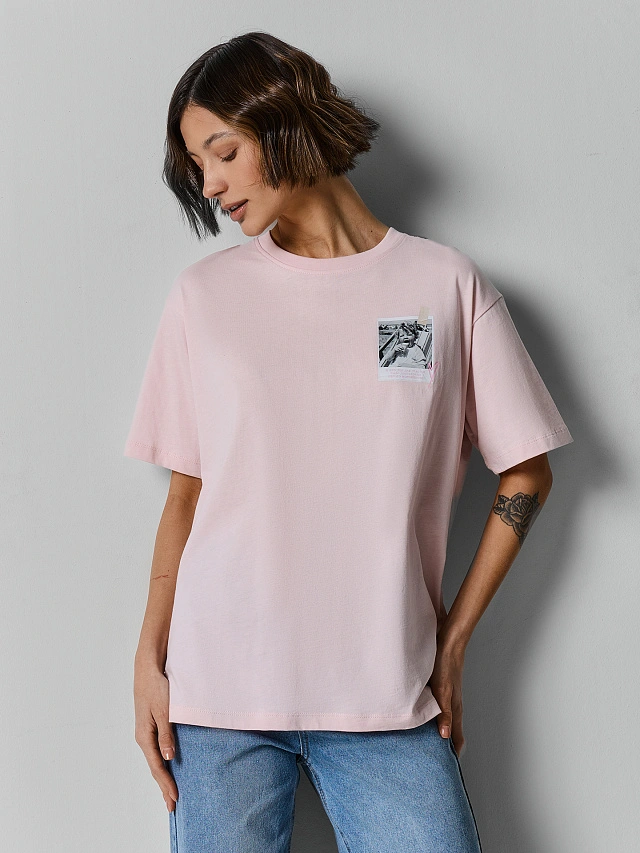 Футболка оверсайз женская розовая с надписью "Все мы родом из детства"