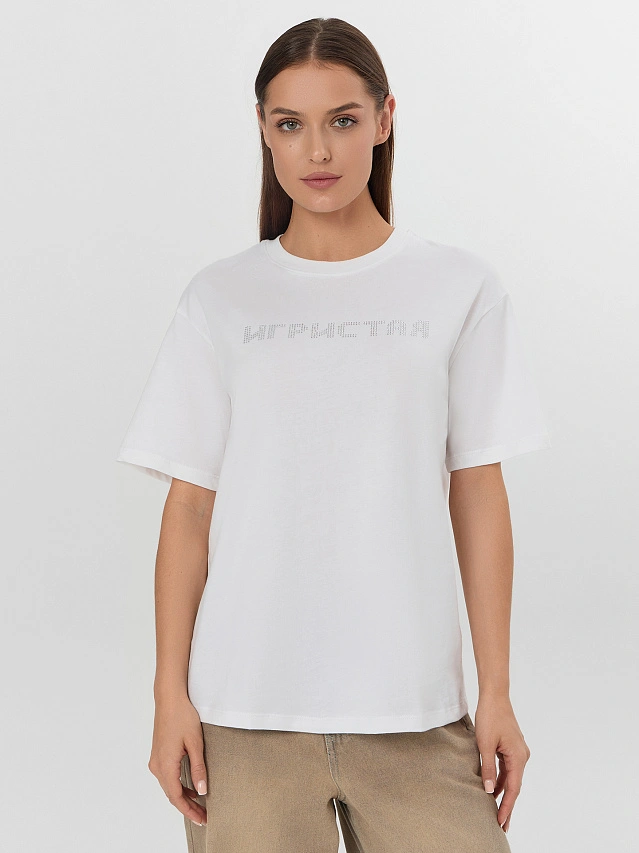 Белая женская футболка с надписью «Игристая» станет прекрасным спутником во время праздников. Позитивная надпись создает ощущение легкости и веселья, задавая настроение всему образу.