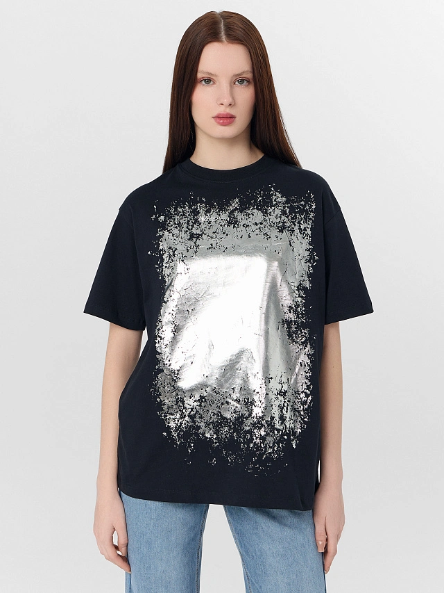 Эта женская футболка из трикотажной кулирки — стильный и удобный выбор для повседневного гардероба. Модель отличается свободным силуэтом и круглым вырезом, обеспечивая комфорт и свободу движений благодаря спущенной линии плеча и углубленной пройме. Широкие рукава, чуть выше локтя, добавляют оригинальности и делают футболку еще более удобной. Эта стильная модель прекрасно сочетается с различными элементами гардероба, добавляя непринужденный и модный акцент в ваш образ.