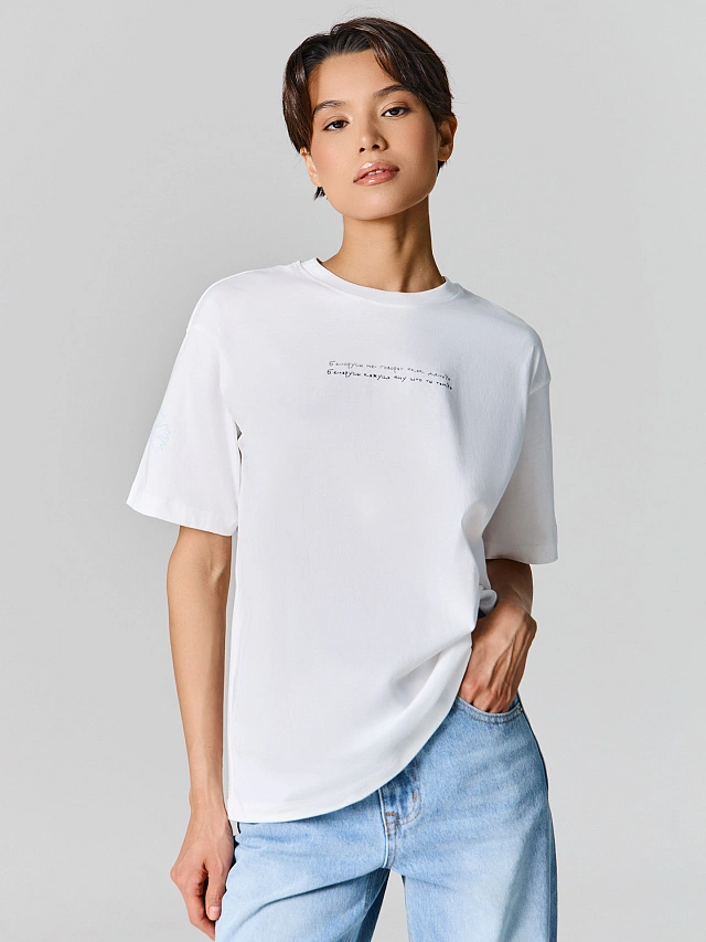 Белая футболка отличная. Базовая, оверсайз, не просветивает. На высокий рост 175+ не короткая. Рекомендую
