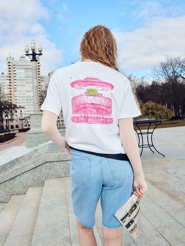 Футболка женская белая с принтом "кинотеатр октябрь"