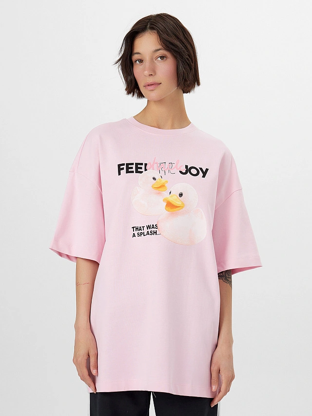 Футболка женская розовая с принтом и надписью "feel the joy"