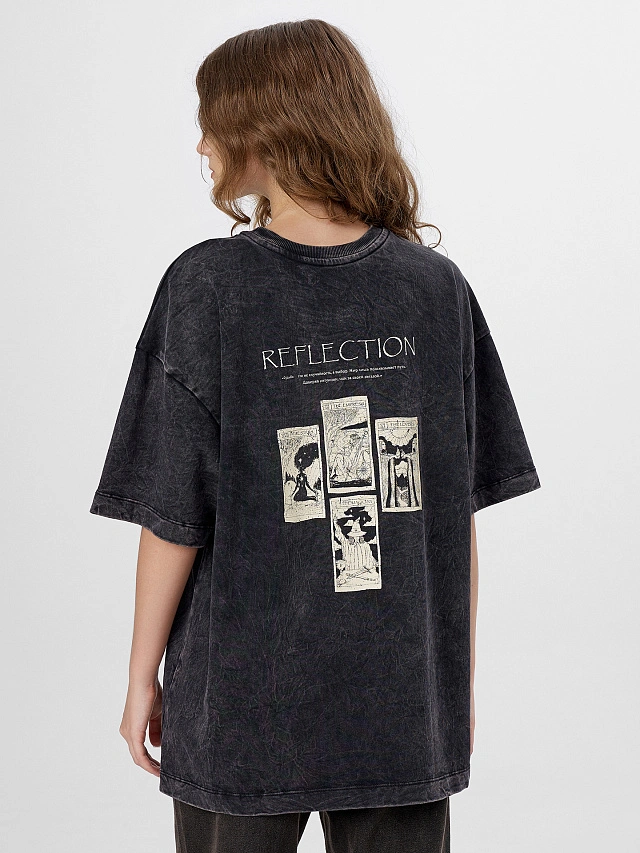Футболка женская серая с принтом и надписью "reflection"