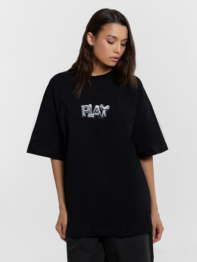 Футболка женская оверсайз черная с принтом "Play"