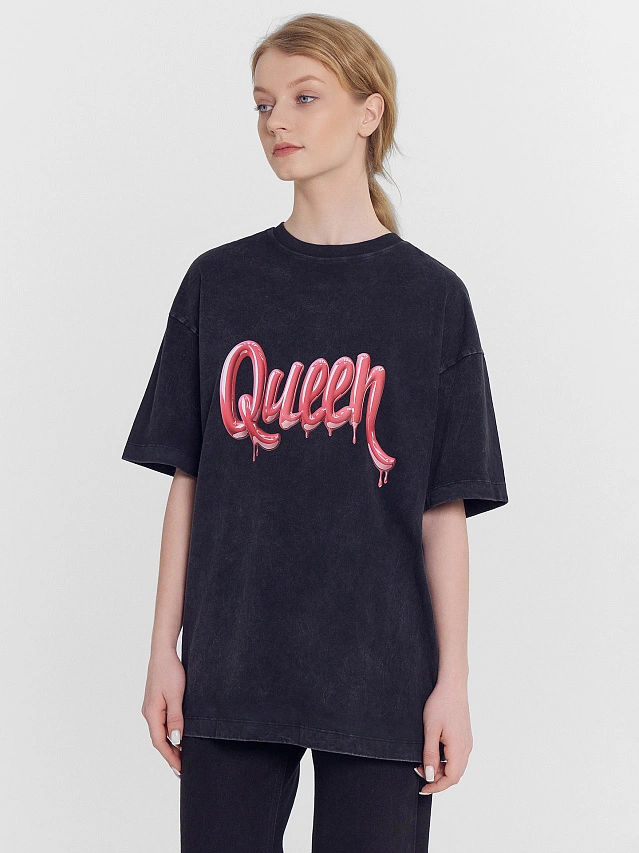 Футболка женская черная оверсайз с надписью "queen"