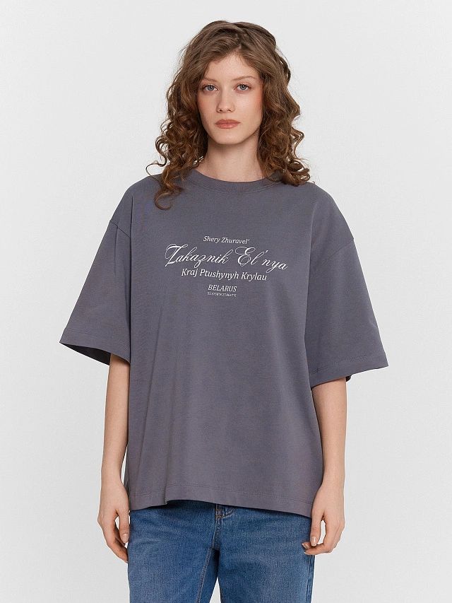 Футболка женская серая из коллекции «zakaзnik el’nya / Заказник Ельня»