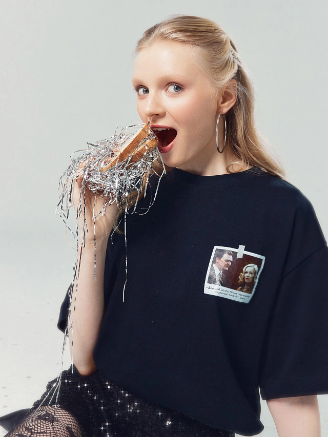 Футболка женская черная с принтом по мотивам фильма "ирония судьбы, или с легким паром!""