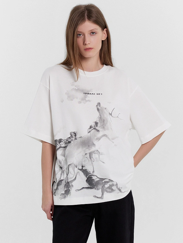 Стильная однотонная футболка женская свободного силуэта из 100% хлопка. Модель с принтом в виде животных и надписи "Травле нет". Горловина круглой формы. Свободу движений гарантируют спущенная линия плеча и углубленная пройма. Рукава широкие, чуть выше локтя. Легкий и натуральный материал футболки женской хорошо пропускает воздух, слегка тянется и не сковывает движений. Такая футболка женская оверсайз, отлично подойдет для создания casual образа. В линейке представлены разные модели, а также есть интересные варианты с принтами. Широкий размерный ряд, есть модели plus-size для девушек с формами. Рекомендуем!