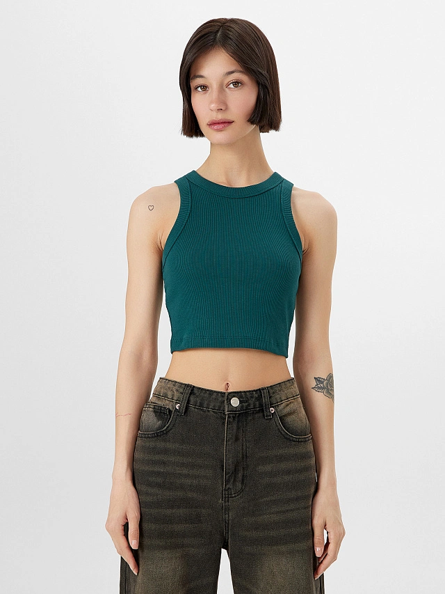 Стильный женский топ прилегающего силуэта — идеальный выбор для активного образа жизни и повседневного комфорта. Модель выполнена из хлопковой трикотажной рибаны, которая отличается мягкостью, эластичностью и отличной воздухопроницаемостью. Длина топа до линии талии подчеркивает фигуру, а круглый вырез и пройма «американского» типа придают образу спортивную динамику и визуально вытягивают линию плеч. Такой топ отлично подходит для занятий спортом, прогулок, отдыха или создания стильных кэжуал-луков. Его легко сочетать с джоггерами, шортами, леггинсами или джинсами, а также использовать как базу под жакет или рубашку. Благодаря универсальному дизайну и натуральному составу, он станет незаменимой частью летнего гардероба.