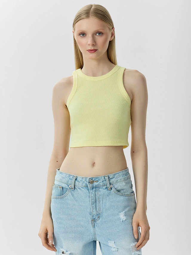 Прилегающий силуэт подчеркивает фигуру, обеспечивая удобство и свободу движений, что особенно важно для спорта и отдыха. Модель выполнена из хлопковой трикотажной рибаны, которая славится своей мягкостью, эластичностью и высокой воздухопроницаемостью. Натуральный хлопок в составе материала делает изделие комфортным и безопасным для кожи, даже при активных нагрузках. Круглый вырез и пройма "американского" типа добавляют динамичности и стильности дизайну, создавая эффектный и функциональный элемент гардероба.