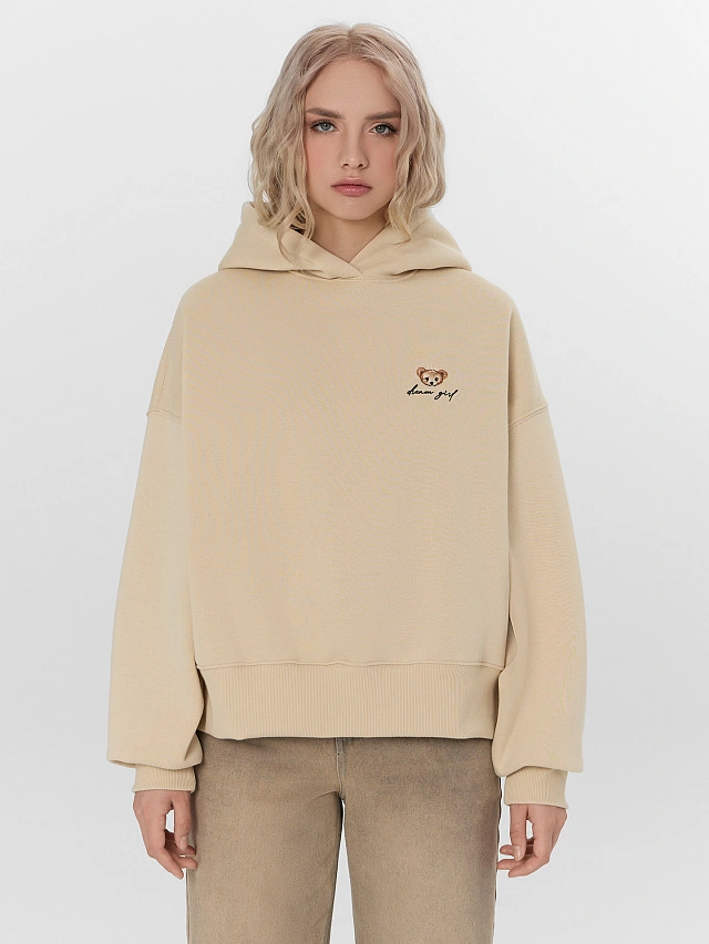 Теплое худи женское бежевое с начесом
