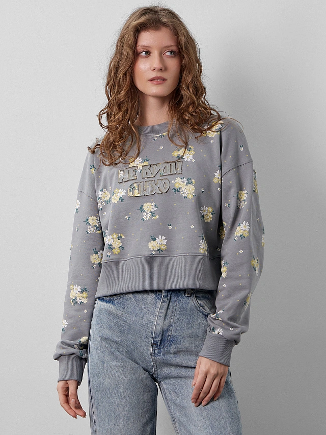 Свитшот женский серый "Не буди лихо"