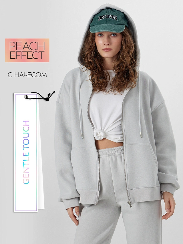 Женская толстовка прямого кроя из коллекции Gentle Touch создана для тех, кто ценит осознанный комфорт. Модель выполнена из инновационного футера с пич-эффектом и мягким начесом внутри, который создает на поверхности ткани бархатистую текстуру, дарящую невероятно нежные тактильные ощущения.