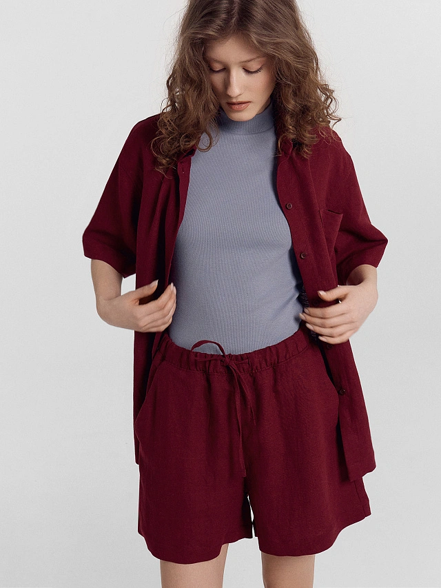 Комплект женский бордовый: рубашка, шорты