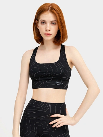 Топ женский спортивный в черном цвете с оригинальным принтом