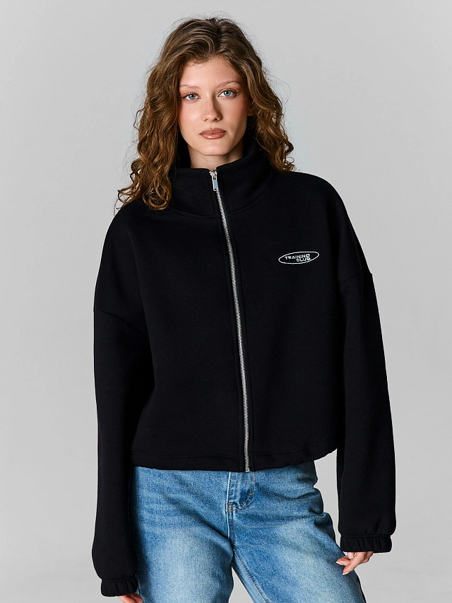Теплая толстовка женская черная на молнии с начесом