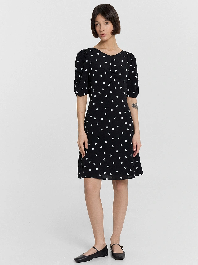 Платье женское черное с цветочным принтом